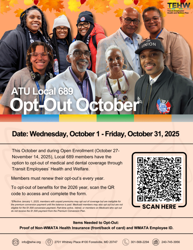 Opting out of benefits for the 2026 plan year? Visit https://tinyurl.com/r4rah6ay or scan the QR code to complete the electronic form. Members may opt out beginning October 1 through the end of Open Enrollment on November 14, 2025.